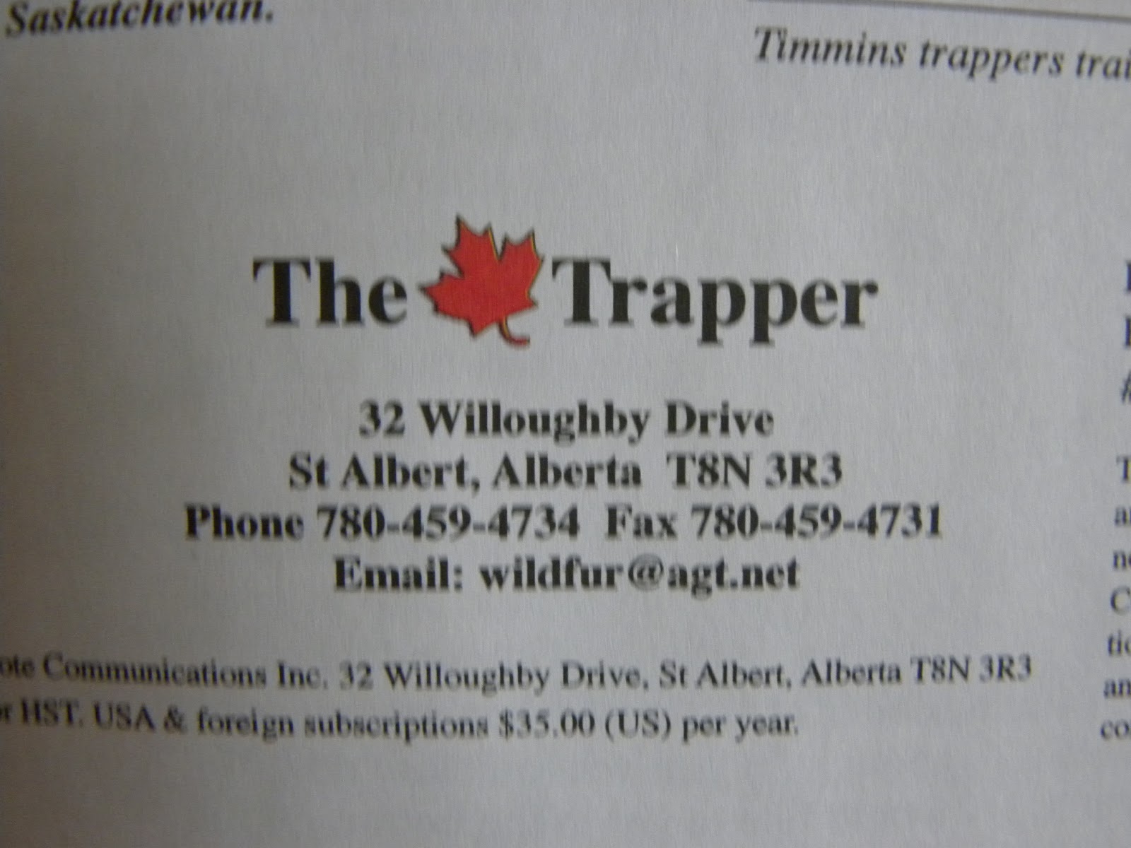 After reading the BC Trapper Magazine front to back, Bryan reads The Canadian Trapper. It's published out of Alberta. There is also a Trapper Classifieds, free to subscribers. 20.00 Cdn Annually plus taxes. or 35. US for USA or foreign.